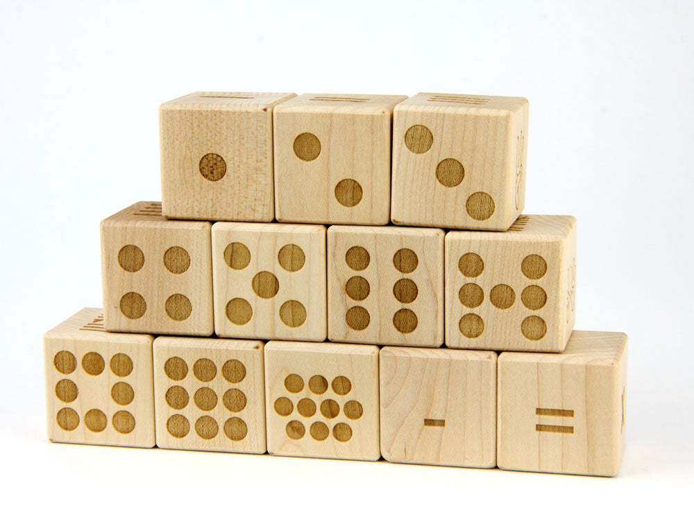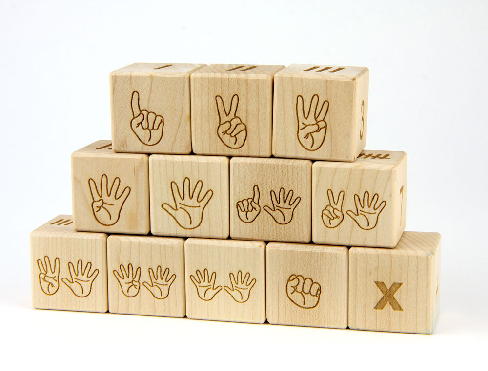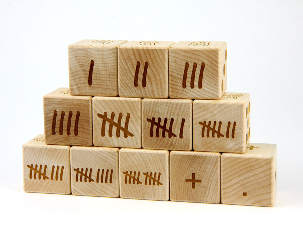Everwood Friends™ 12 piece set of Number Style Blocks is a fun way to learn about counting and numbers. Each block is engraved with numbers in six different styles: numerals, roman numerals, words, dots, fingers, and tallies.