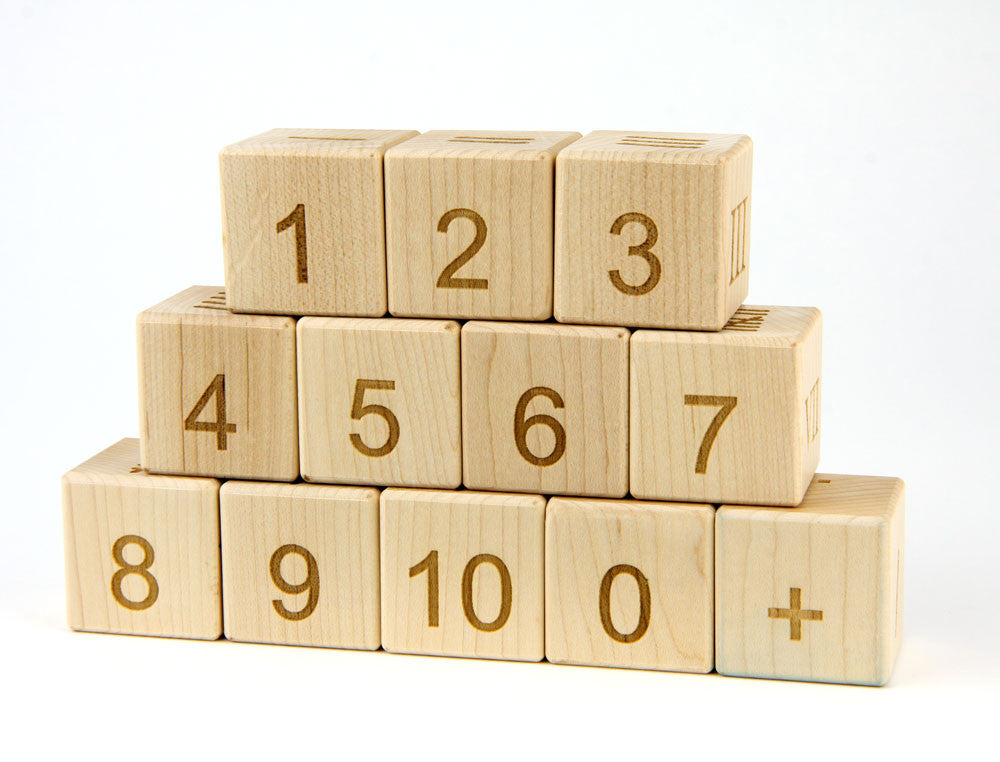 There are blocks with numbers zero through ten, plus a bonus block with math signs like plus, minus, and equals.