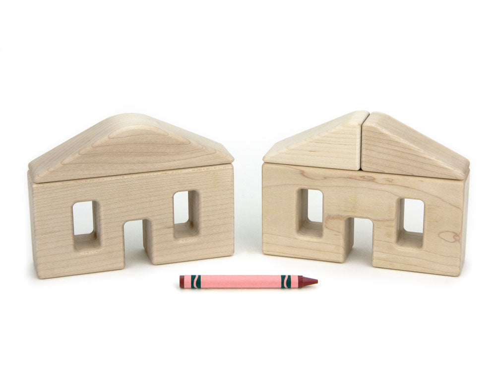 Designed with some of our youngest builders in mind (but great for all ages 18 months+), each chunky block is a full unit thick (1-3/8") making it very stable for stacking and to stand on end. Like all Everwood Friends™ blocks, every edge is rounded and every surface is sanded buttery smooth. Kids and grown-ups love handling these adorable blocks and combining them to create unique buildings for their own Little Town!