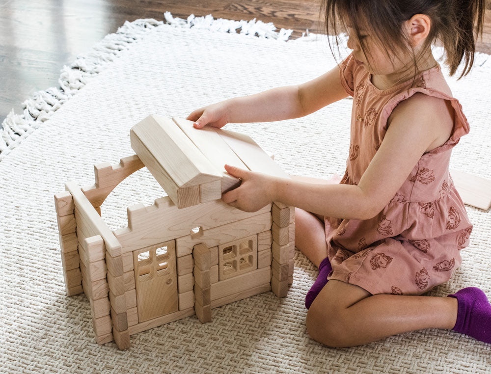 Everwood Friends™ Notch Blocks are amazing open-ended toys that allow builders to create structures that don't accidentally fall down. Build a doll house, fire station, sports stadium, or castle, then play with it without worrying about it tumbling down when it's bumped! Best of all, when it's time for something new, just knock it down and start fresh!