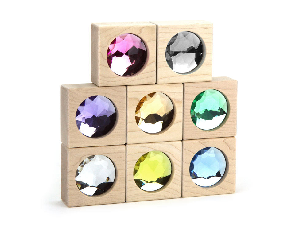 - 8 solid maple blocks, each with 1 acrylic gem securely inset on one side