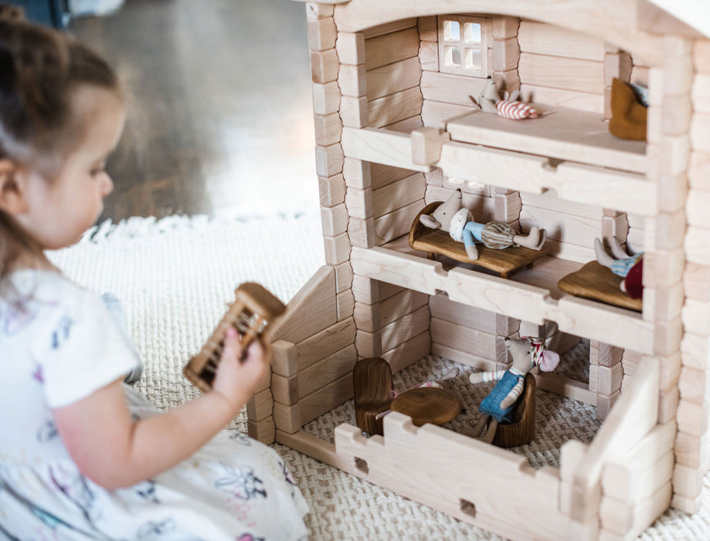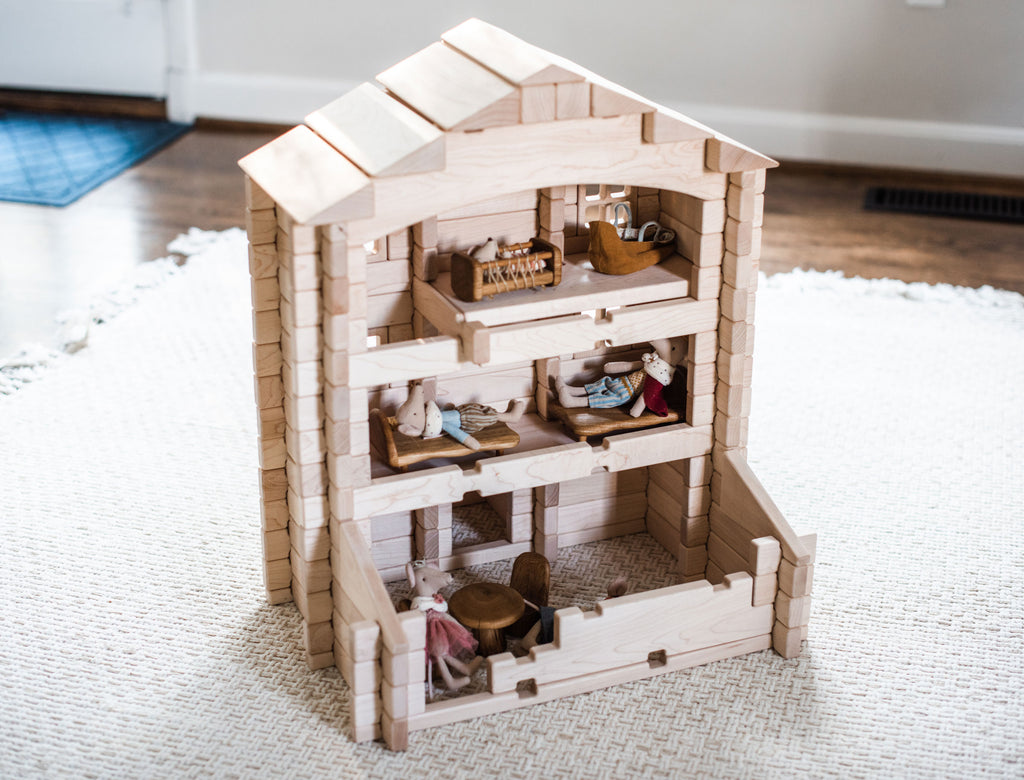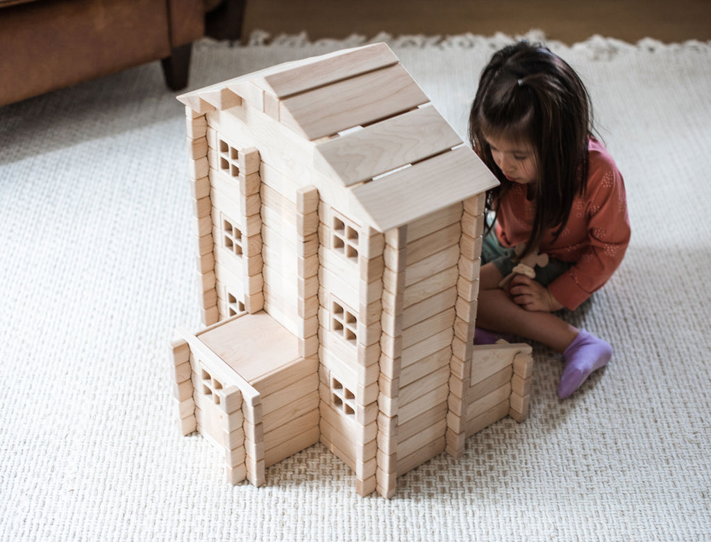Everwood Friends™ Notch Blocks are amazing open-ended toys that allow builders to create structures that don't accidentally fall down. Build a doll house, fire station, sports stadium, or castle, then play with it without worrying about it tumbling down when it's bumped! Best of all, when it's time for something new, just knock it down and start fresh!