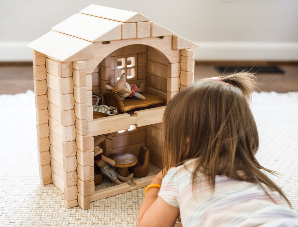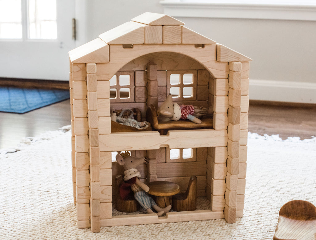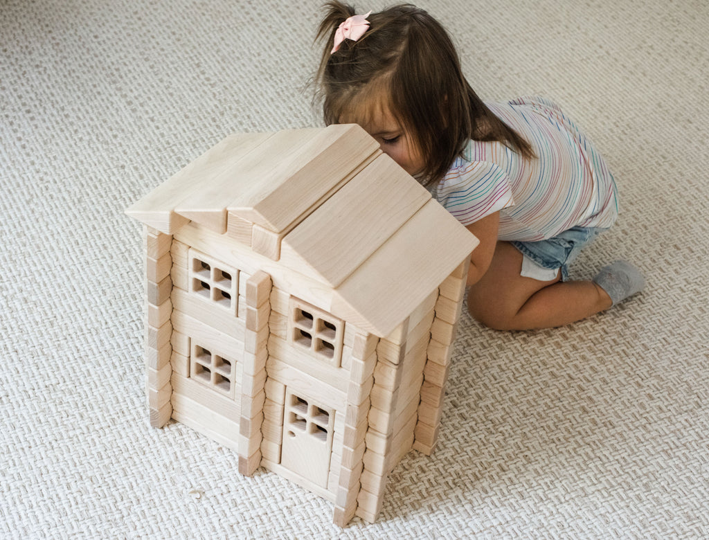 Everwood Friends™ Notch Blocks are amazing open-ended toys that allow builders to create structures that don't accidentally fall down. Build a doll house, fire station, sports stadium, or castle, then play with it without worrying about it tumbling down when it's bumped! Best of all, when it's time for something new, just knock it down and start fresh!