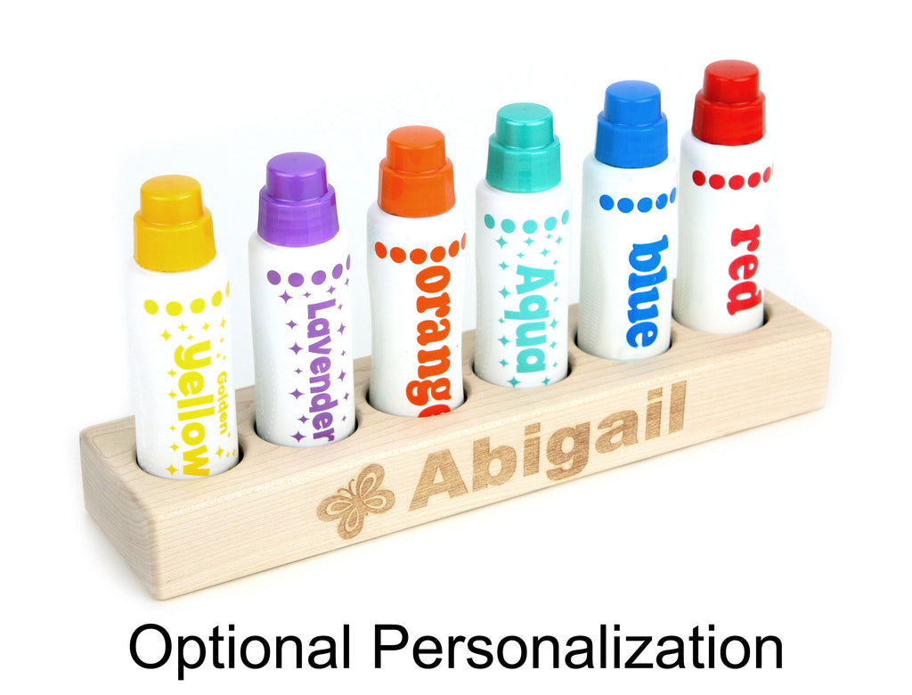Everwood Friends Dot Art Holder is made from a solid piece of hard maple with 6 large holes so art supplies stay ready for the next masterpiece!