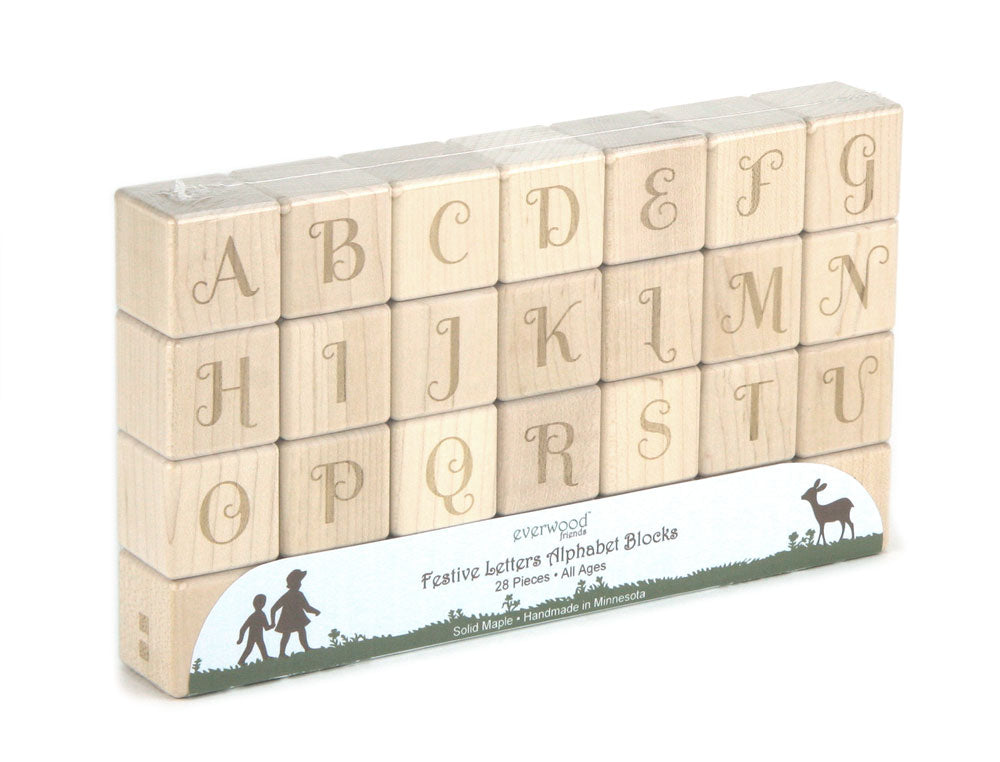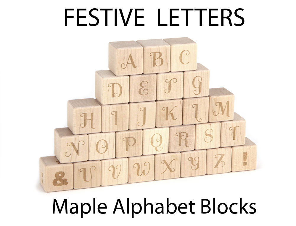 28 pc. Festive Letter Engraved Alphabet Blocks