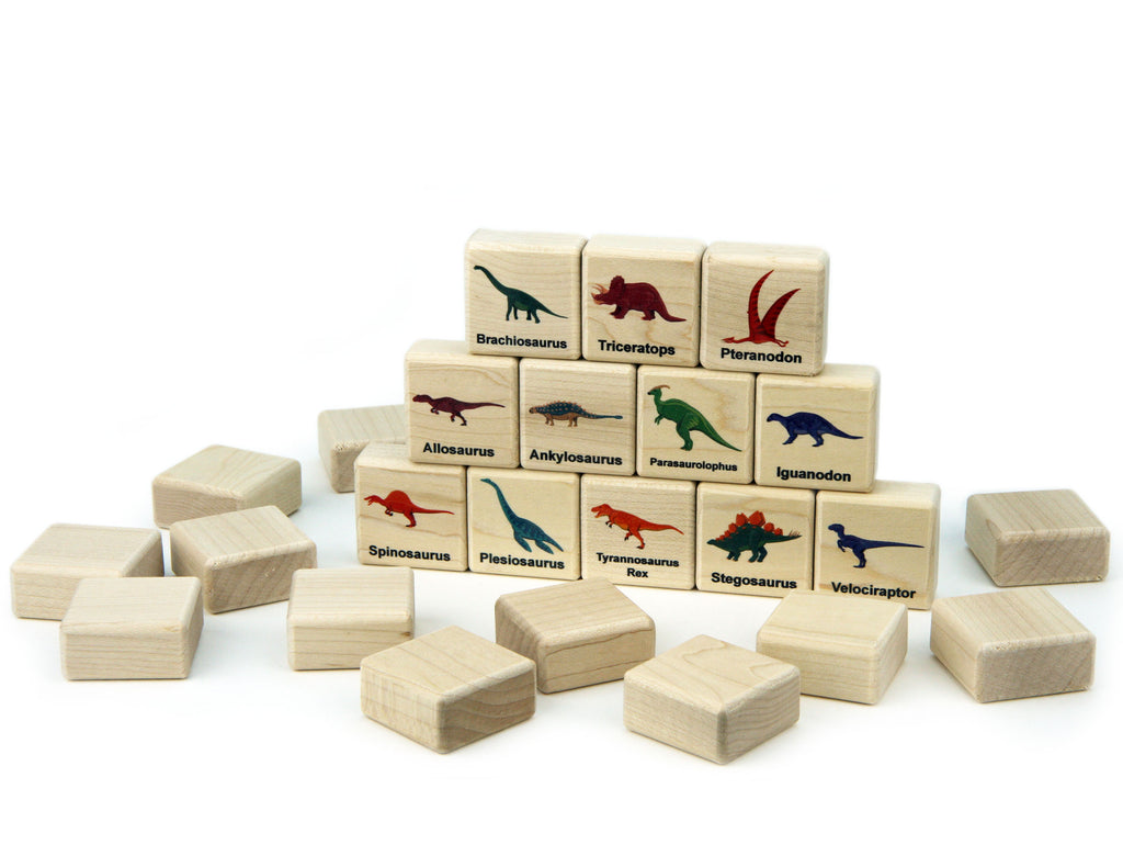 How many dinosaurs can your child name? Discover dinosaurs while practicing memory and reading skills with our Color Dinosaurs Matching Game. This game features 24 maple blocks perfect for teaching about dinosaurs.