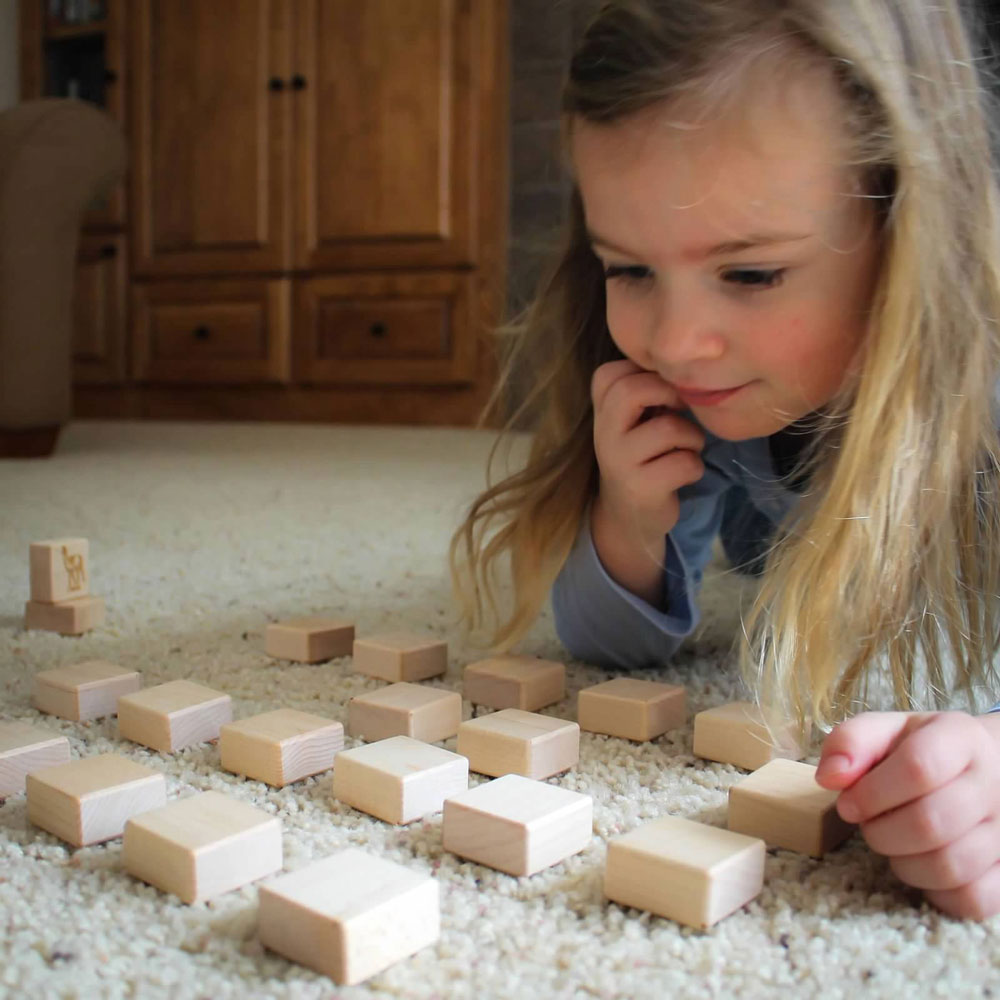This game features 24 maple blocks, with 12 different vibrant images printed in durable, kid-safe ink.