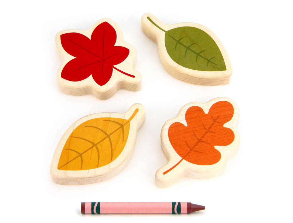 Enjoy the gorgeous fall colors of Maple, Birch, and Oak leaves with Everwood Friends™ Autumn Leaf Shape Blocks! Each leaf is printed with durable kid-safe ink on one side.