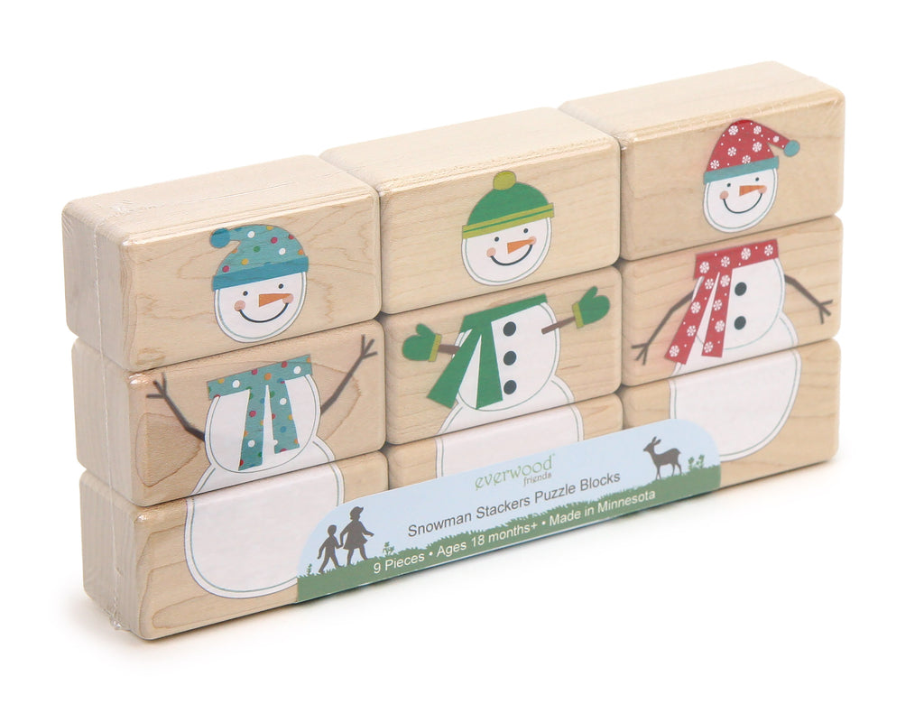 Little ones will love mixing and stacking up their own snowman creations with Everwood Friends® adorable 9 pc. Snowman Stackers set. Each block is printed with durable kid-safe ink on one side.