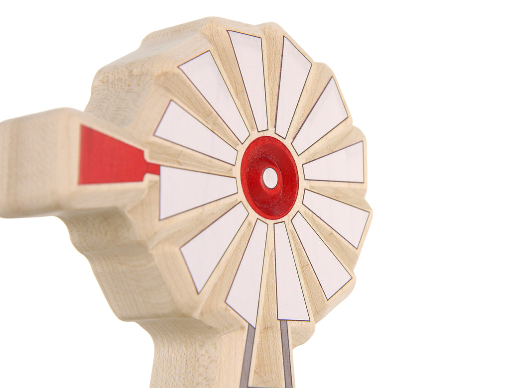 Everwood Friends™ 11-inch tall Windmill is beautifully carved from a single block of wood and gorgeously printed with durable kid-safe ink. A great piece to mix with other farm-theme toys and blocks!