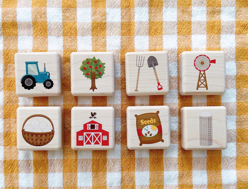 - 8 blocks, printed with durable kid-safe ink on 1 side