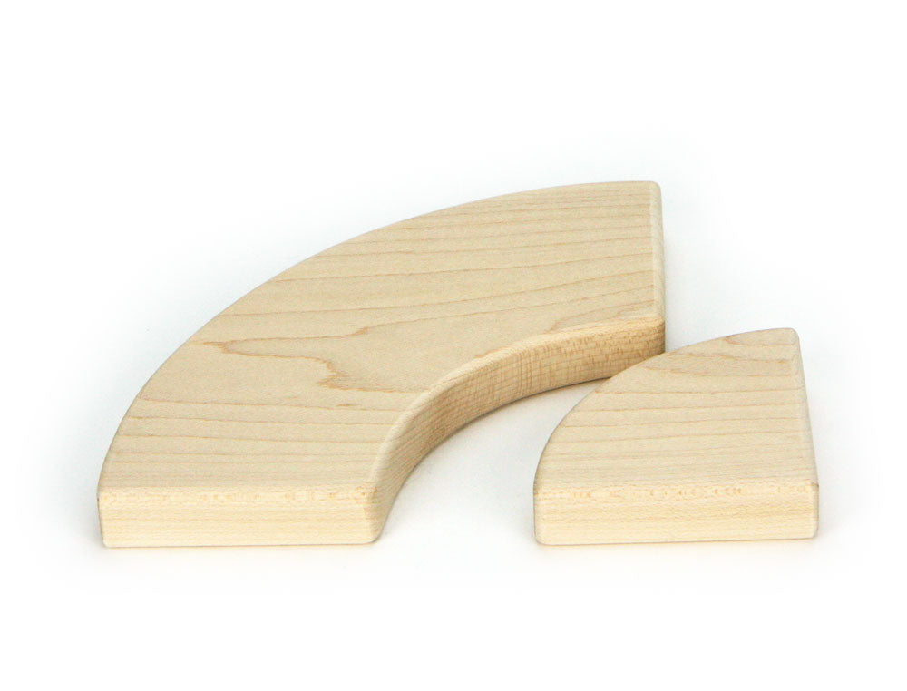 This is an individual solid maple building block Flat Large Half Arch and Quarter Circle set.