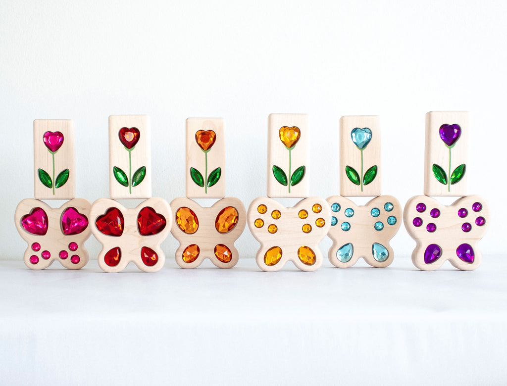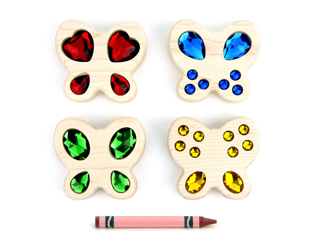 Primary Color Butterfly Gem 4 pc. Sensory Stacker Maple Block Set