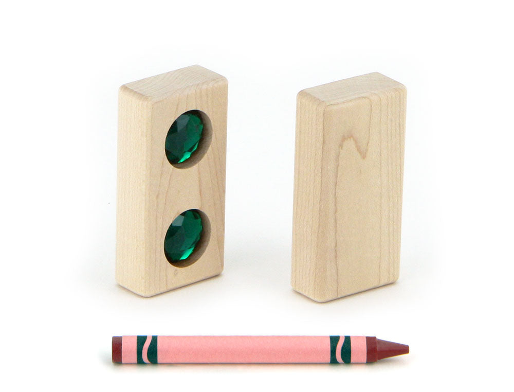 - 12 solid maple blocks, each with 2 acrylic gems securely inset