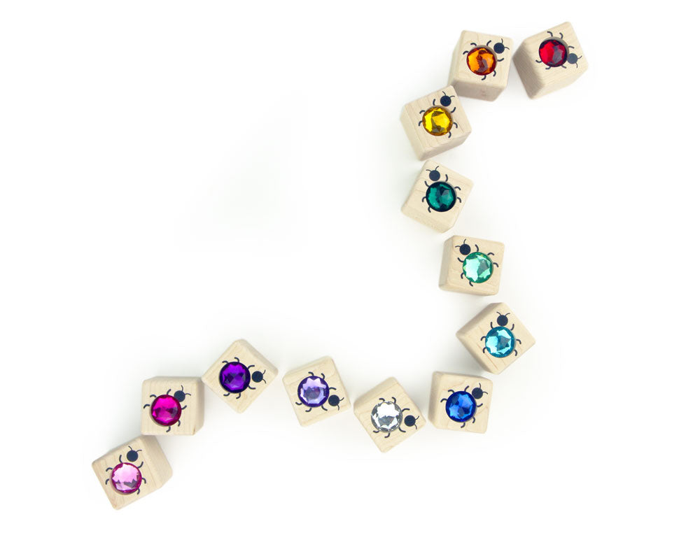 Everwood Friends™ 12 piece set of Little Ladybugs Cube Gem Building Blocks add a beautiful sparkle of vibrant color to any building block set!