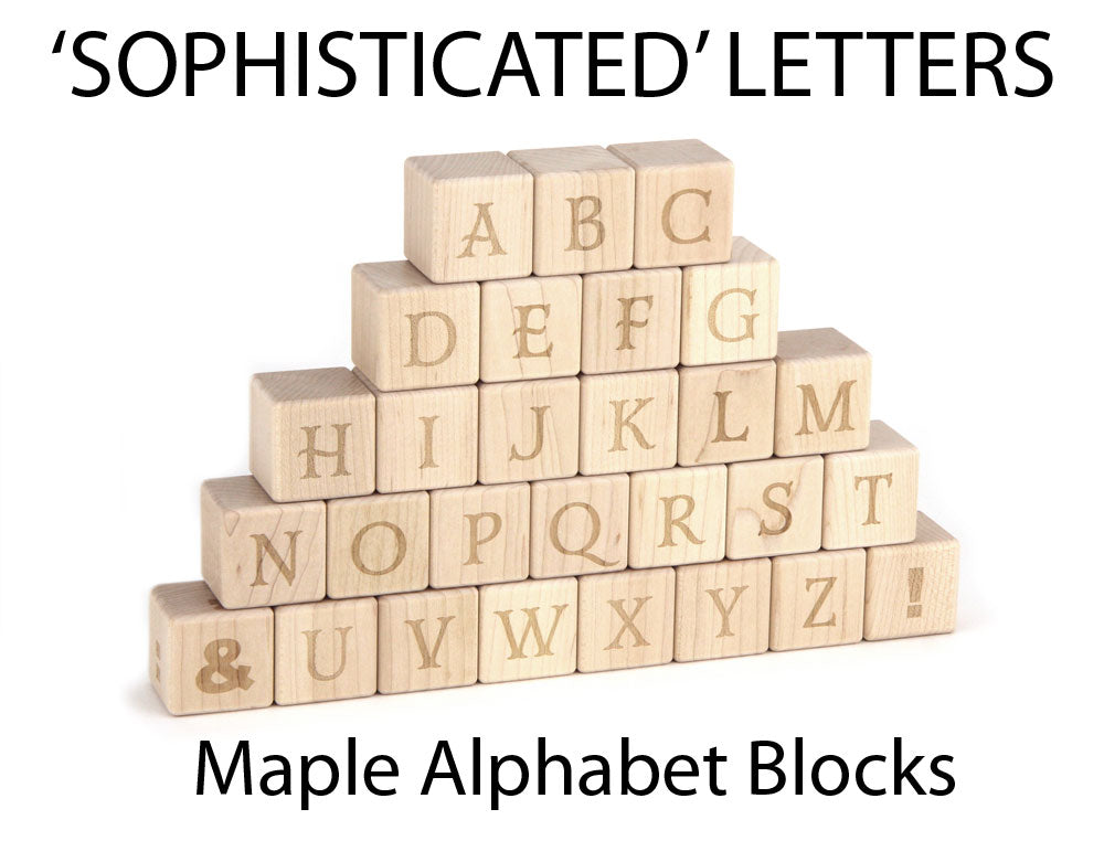 Expand your child's spelling and building skills with this natural maple block set that features the alphabet permanently engraved on one side.