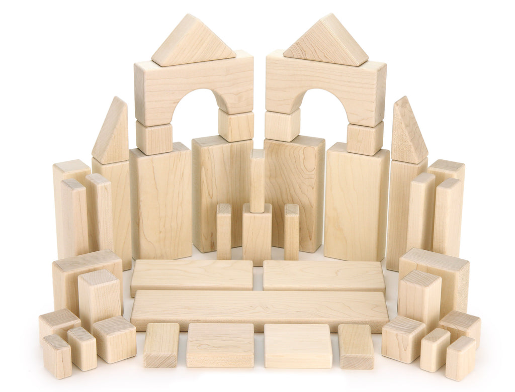 With many of the same kindergarten size unit blocks as our larger sets, this set is a beautiful beginning to a wonderful set of building blocks with interesting pieces to keep children of all ages active with imaginative play for hours.