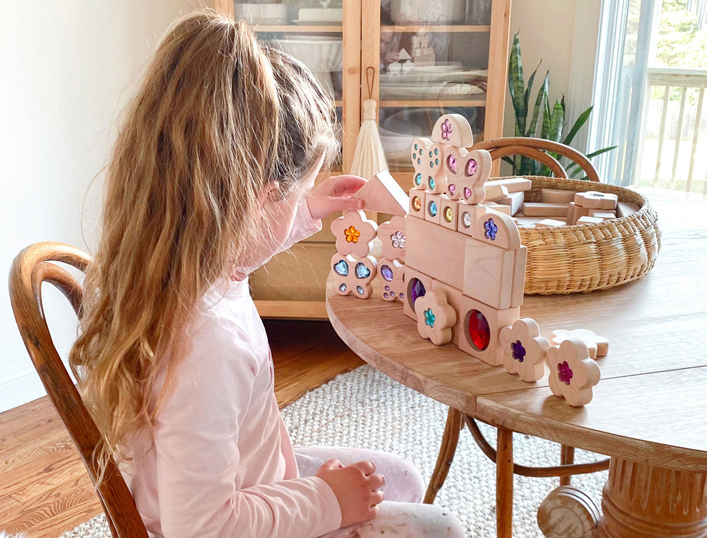 Pastel Flower Gem 4 pc. Sensory Stacker Maple Block Set