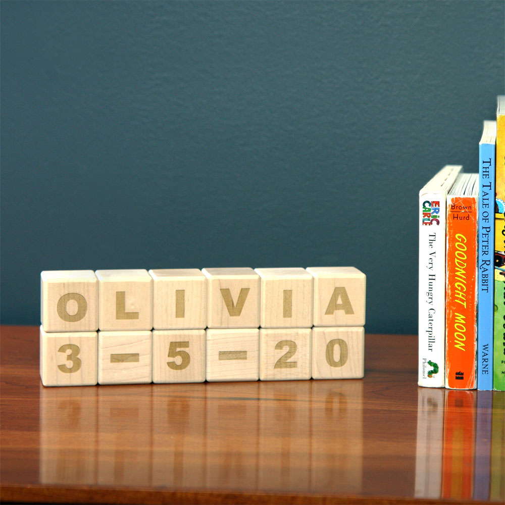 Makes a beautiful building set, nursery decor item, baby photo prop, and new baby or shower gift.